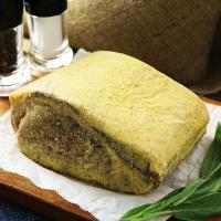 バックベーコン、カナディアンベーコン、フレッシュベーコン又はピーミールベーコン(Pea Meal Bacon)などと呼ばれるベーコン。赤身の多いポークロインを天然海塩とスペシャルブレンドのスパイスで浸けこみ、コーンミール(とうもろこしの粉)を外側に塗しました。