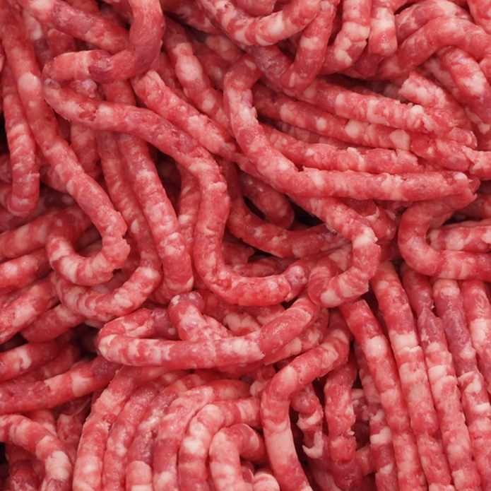 脂肪分の少ない骨なしラムショルダー(肩肉)の部位をミンチにしました。ミンチによく使われるトリミングのお肉などは使用していません。脂の割合は約20%ほどです。