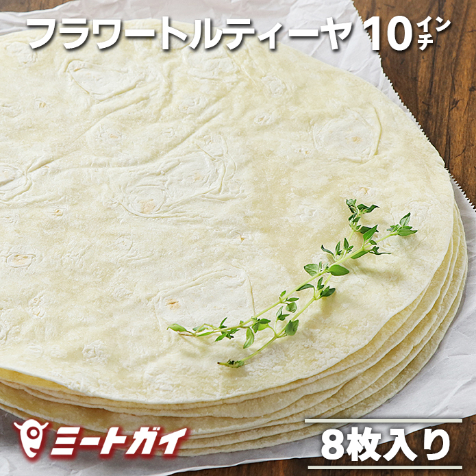 10インチ(直径約25cm)のトルティーヤが8枚入ったパックです。ブリトーサイズとも呼ばれ、具材を完全に包み込み、チーズ等を入れてとろとろに加熱・調理するためにも使われるタイプです。もちろん、お好きな具材を挟んでボリュームたっぷりのラップサンドとしても適しています。袋はチャック付きなので、食べる分だけ取り出せて便利です♪