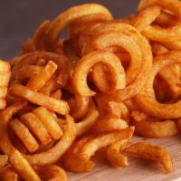 ぐるぐるカット(カーリーフライ)ポテト。螺旋状(立て巻きパーマのような形)にカットされたポテト。
