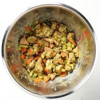*より美味しいスタッフィングにするは、ターキーやお肉の焼き汁半カップ、熱湯半カップを入れて下さい。