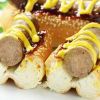 4. バーベキューソースをかければ、あつあつのホットドックのできあがり♪