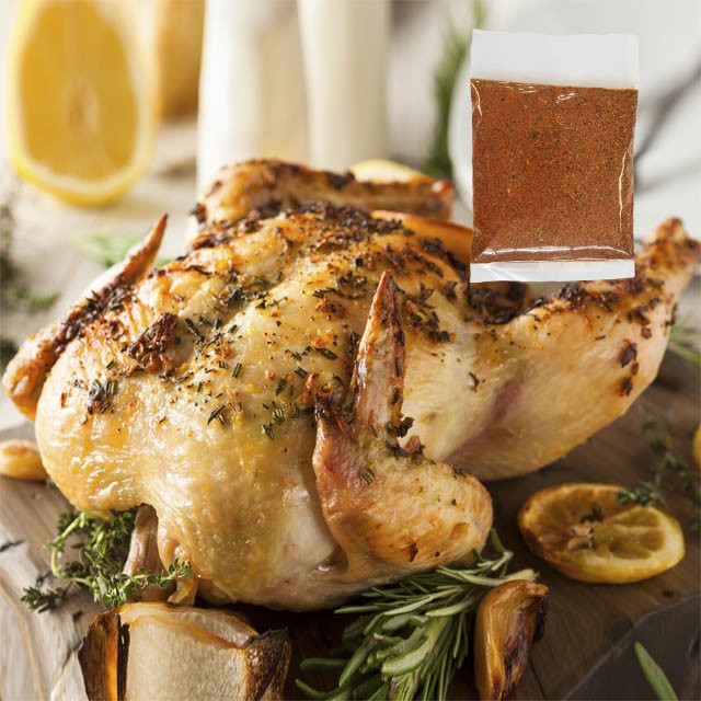 鶏の丸焼用のホールチキン(グリラー)とThe Meat Guy(ザ・ミートガイ)オリジナルステーキスパイス20gのセット。