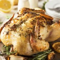 解凍後(冷蔵庫で2〜2日半掛かります)、低めの温度でじっくりとローストしてください。焼き時間の目安は、1pound(450g)あたり約20〜30分です。全体がきつね色になり、丸鶏の足がはずれそうなかんじになったら、焼き上がりです。残ったお肉は翌日サンドイッチに、骨はスープにしてみてはいかがでしょうか。