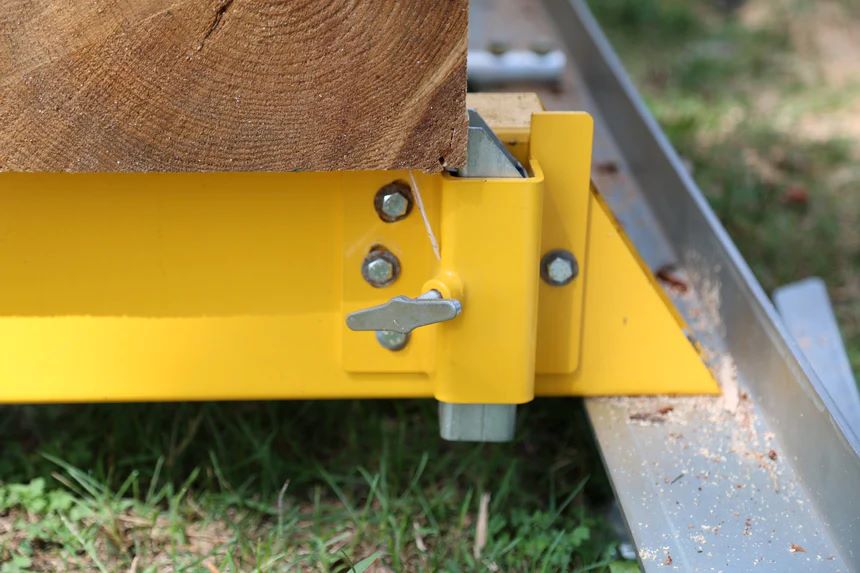 製材時、いかに丸太、ログをしっかりベッドに固定することが重要となります。追加のログレストです。