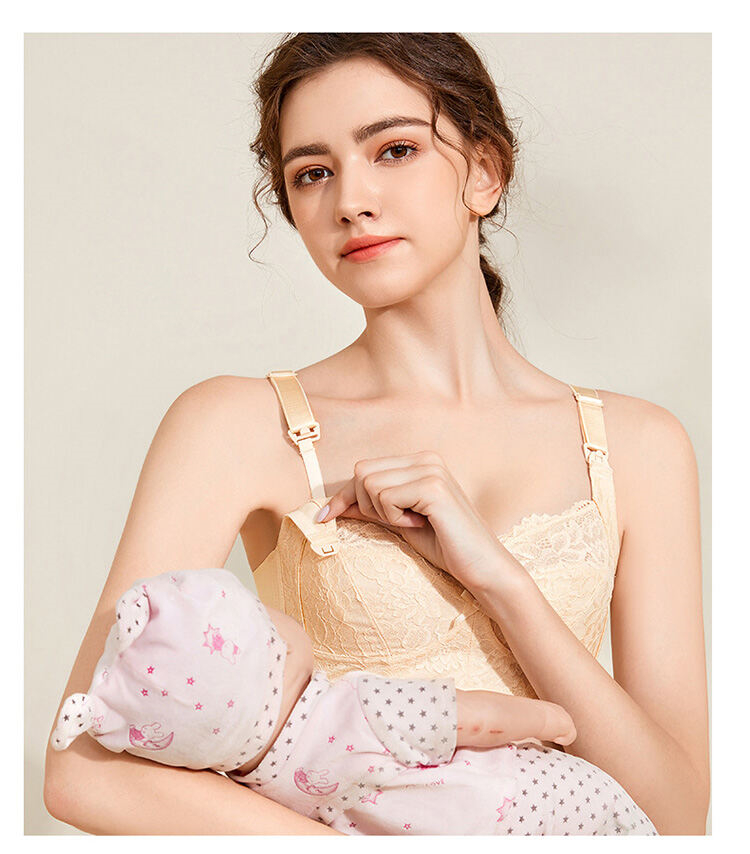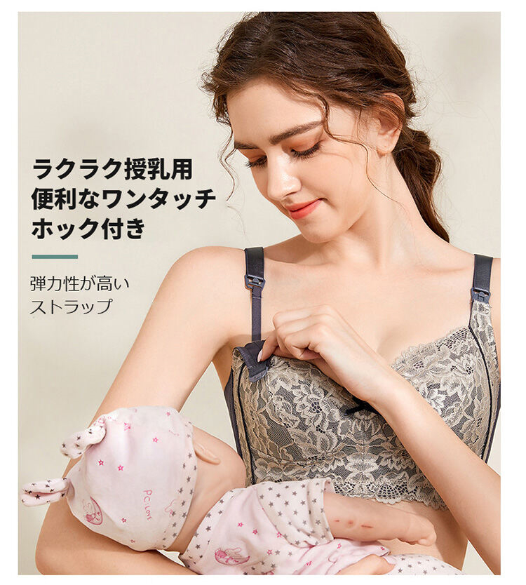 VEIMIA【マタニティブラジャー】おすすめの前開き授乳&小さく見せるブラ。大きいサイズの胸を垂れなくてスッキリ見せる。普段着のまま授乳しやすくするための工夫?グラマバストさん&ママたちに!チクチクしない、こだわりの上質レースを贅沢に使用。 スウィートマミーが誇るこだわりのブラジャーは、美胸を保ちながら授乳も楽らく、長く着回せる