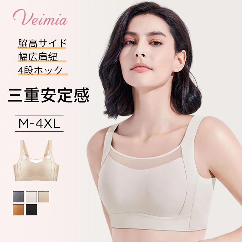 VEIMIA小さく見せるブラ ホールド感 バストフルカップ 大きいサイズ ノンワイヤーブラ さらしブラ 見痩せ シームレスブラ 30代 40代 50代 女性下着 ブラジャー