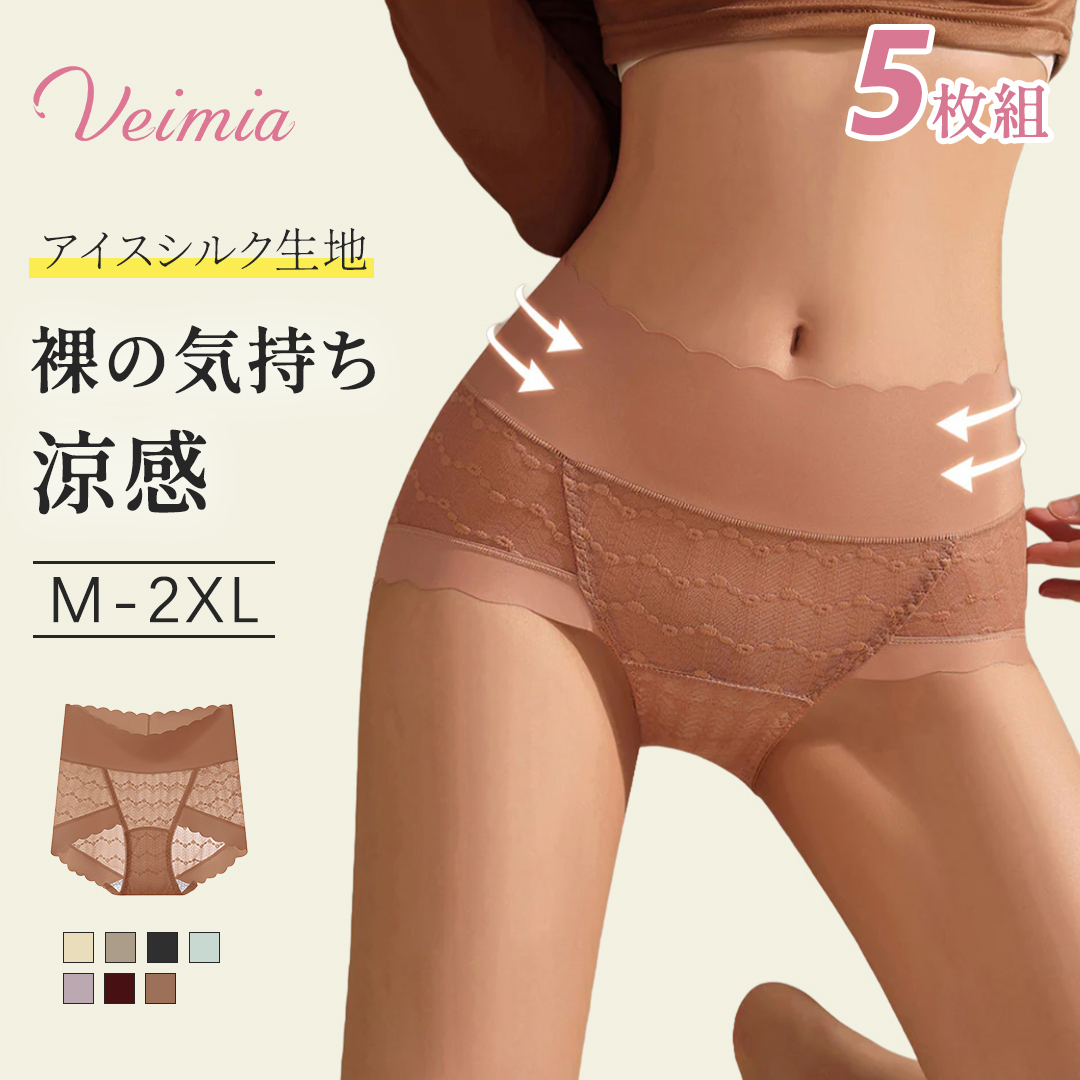 VEIMIA ショーツ レディース 【5枚組】シームレス レースショーツ セクシー下着 程良い透け感 女性用 大きいサイズ パンツ下着 ハイウエスト お腹すっぽり 通気
