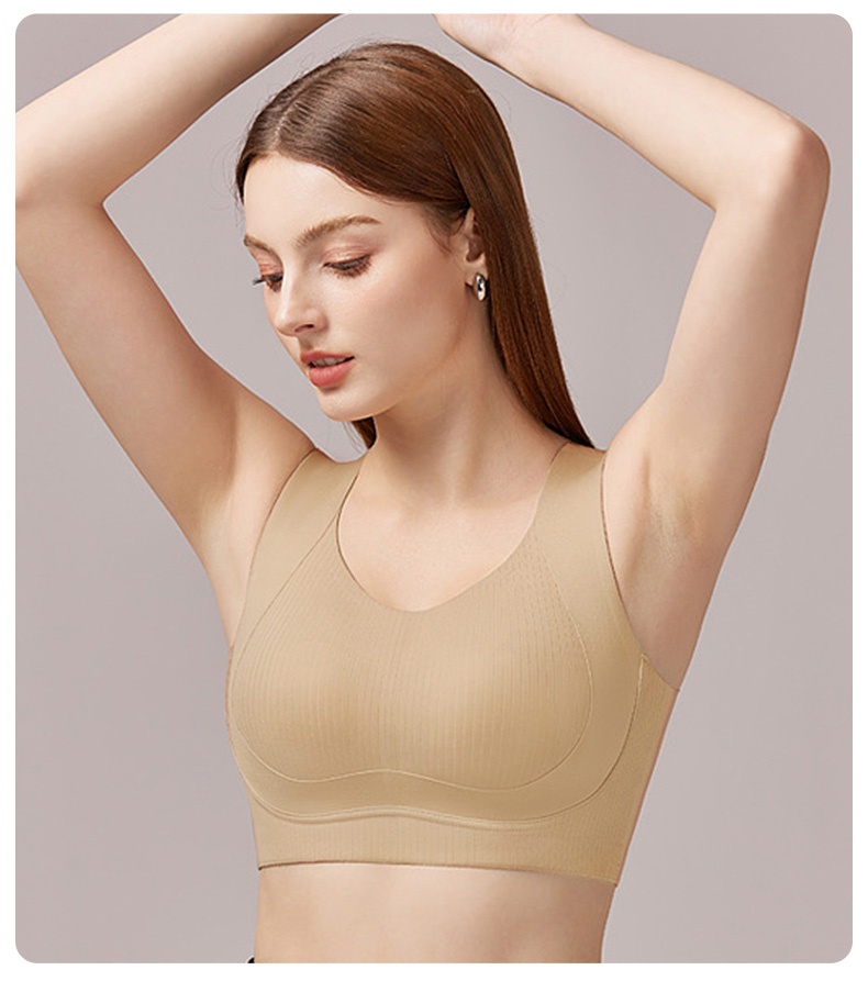 バスト全体をすっぽり包むデザインは脇肉をしっかりキャッチし、優しくバストを包み込む。