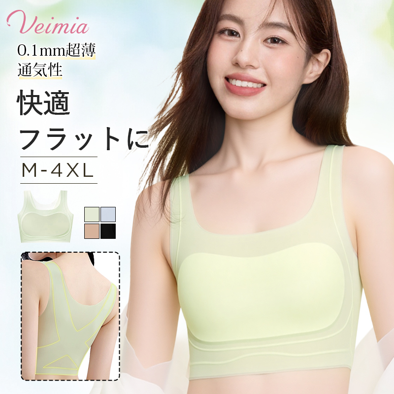 VEIMIA和装ブラジャー ハーフタンクトップ式 胸つぶし 0.1mm超薄 通気 涼感 ノンワイヤー 締め付け感ゼロ 大きいサイズ 小さく見せるブラ 肌着 浴衣インナー
