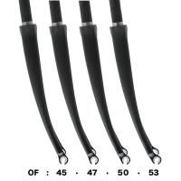 スチールフレームに打ってつけの曲線デザインと、乗り心地を実現したフルカーボンフォーク。レッグ先端部分のみ少しボリュームを上げ、4サイズのオフセットを設定。