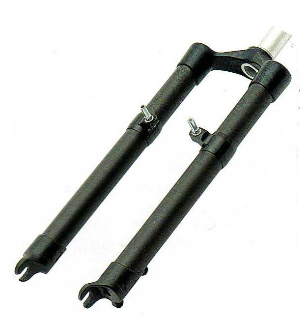 外見からは想像がつかない程に軽量に仕上げられたカーボンフォークは