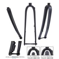 シンプルなベンド形状にオフセット変換可能なデュアルオフセット フリップフロップシステムを搭載したロード系のディスクスルーアクスルフルカーボンフォーク。特にスチール系のフレームに合わせる事で、走行フィーリングのバランス感や扱いやすさに基づく快適性と共に、全体の剛性によって現代のディスクブレーキの効果を引き出す。併せ持つオフセットの変換は走行環境で選択できる楽しみも提供し、タイヤクリアランスも豊富であり、フルフェンダー装着に対する形状デザインも施されている。 快速走行から旅自転車までを誘う器の広いモデル。