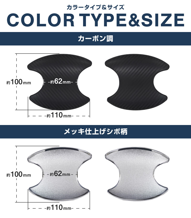 また、シボ柄のメッキ仕上げ・カーボン柄の2色で製作しているのでドレスアップ効果も抜群です。