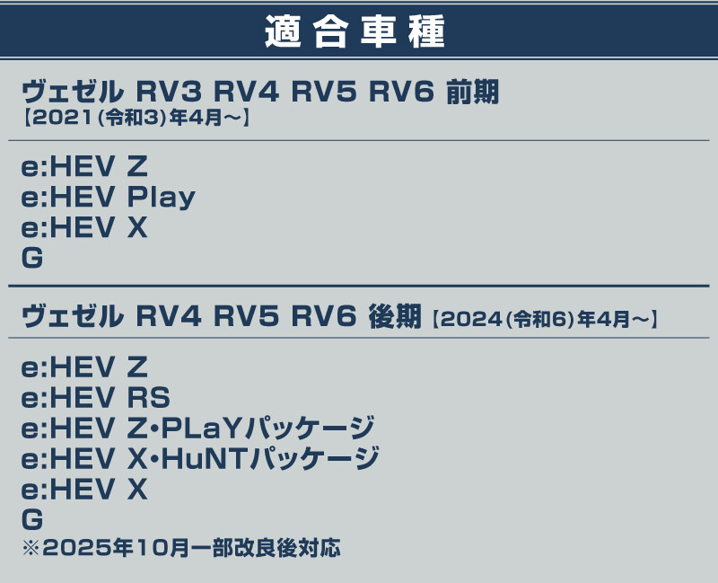 ・ホンダ ヴェゼル RV4 RV5 RV6 後期【2024(令和6)年4月〜】
