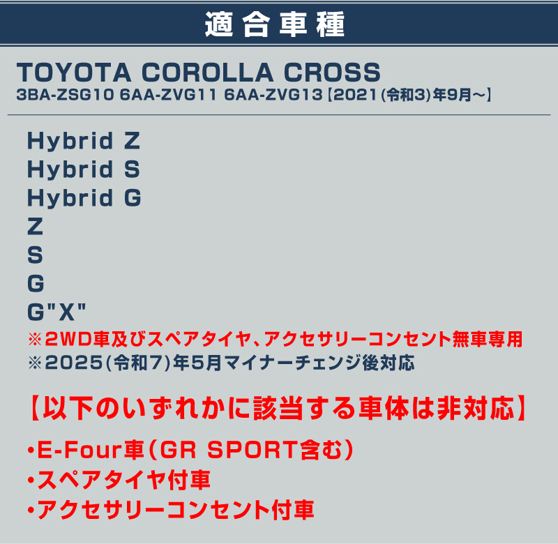 ・トヨタ カローラクロス 3BA-ZSG10 6AA-ZVG11 6AA-ZVG13 【2021(令和3)年9月〜】