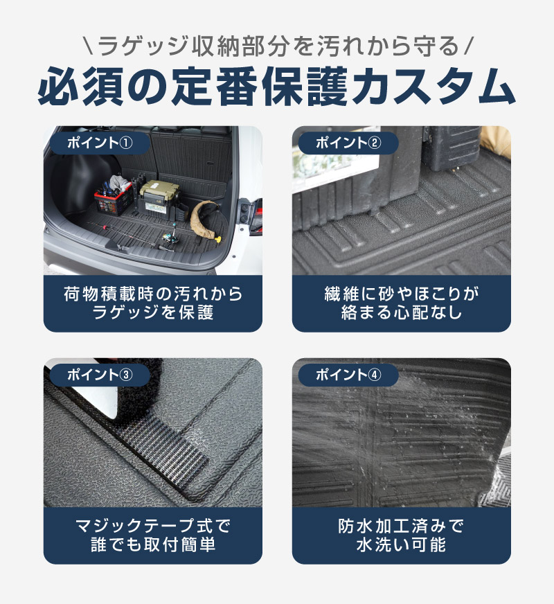 汚れやすいラゲッジスペースを、傷や汚れからしっかり守ってくれます。