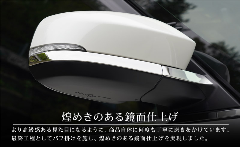 高品質ステンレスを素材で採用。美しい鏡面仕上げを施しているので、まるで最初から付いているようなクオリティに仕上がりました。