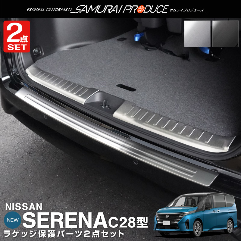 セット割 セレナC28 リアバンパーステップガード & ラゲッジ スカッフプレート セット 選べる2色