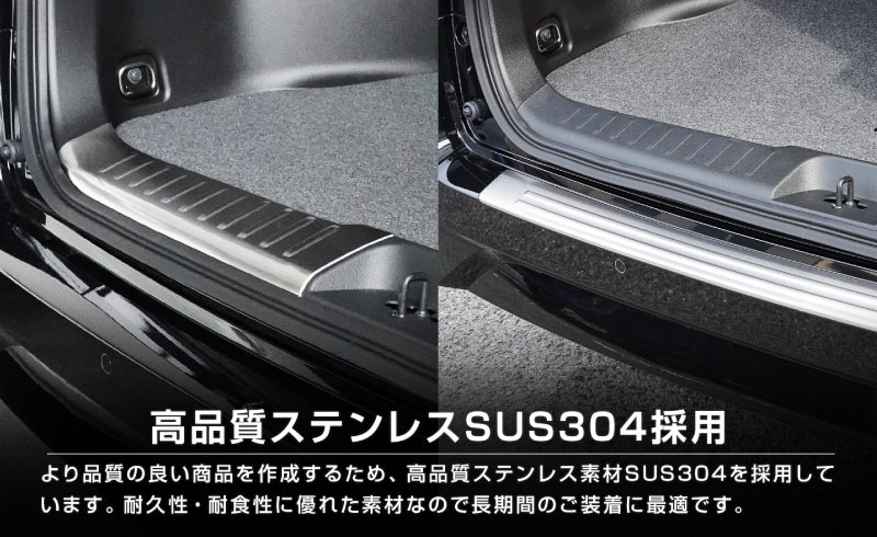 素材には耐久性に優れたステンレスSUS304を採用しており、末永くお車と一緒にお付き合いいただけます。