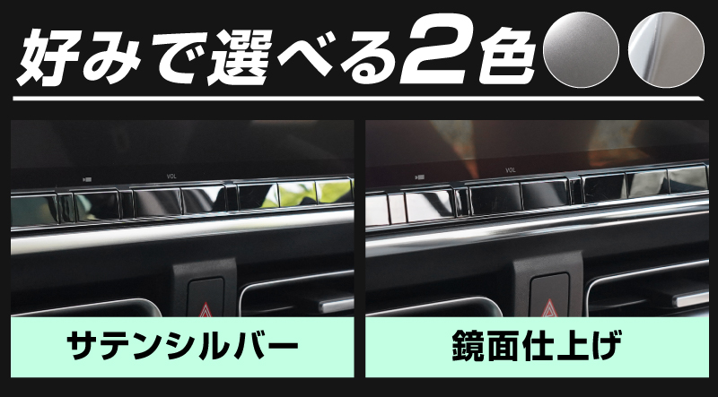 カラーはサテンシルバー、鏡面仕上げの2色でお好みのドレスアップが楽しめます。