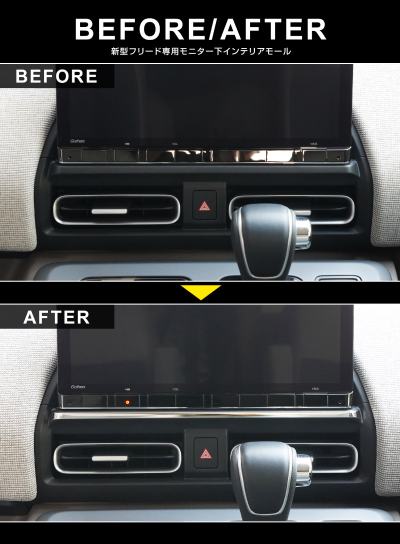 新型フリード GT系 モニター下 インテリアモール 1P 内装 カスタム パーツ 選べる2色 鏡面仕上げ サテンシルバー