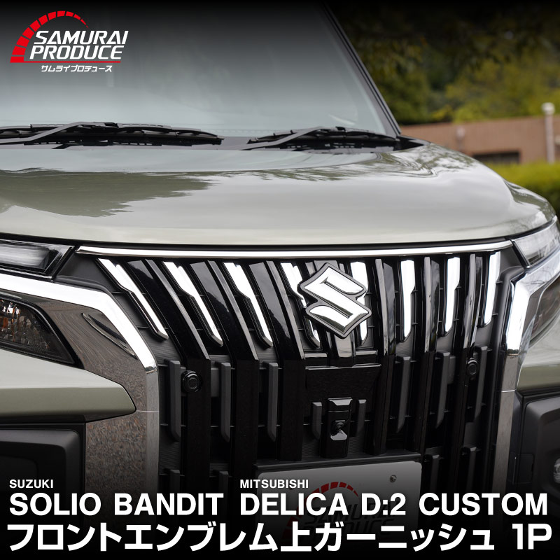 新型ソリオバンディット MAD7S デリカD:2カスタム フロントエンブレム上ガーニッシュ 1P 鏡面仕上げ