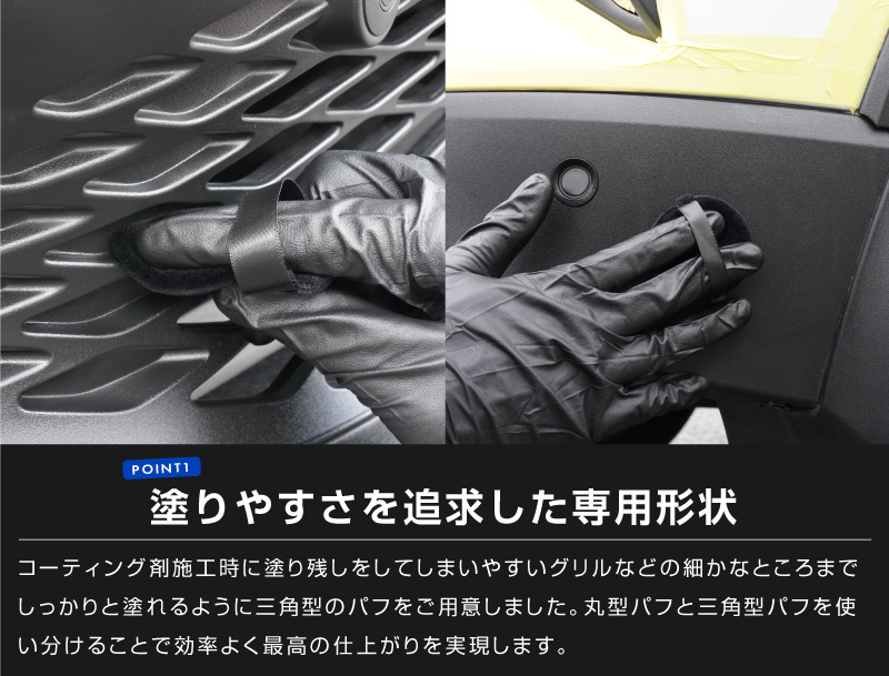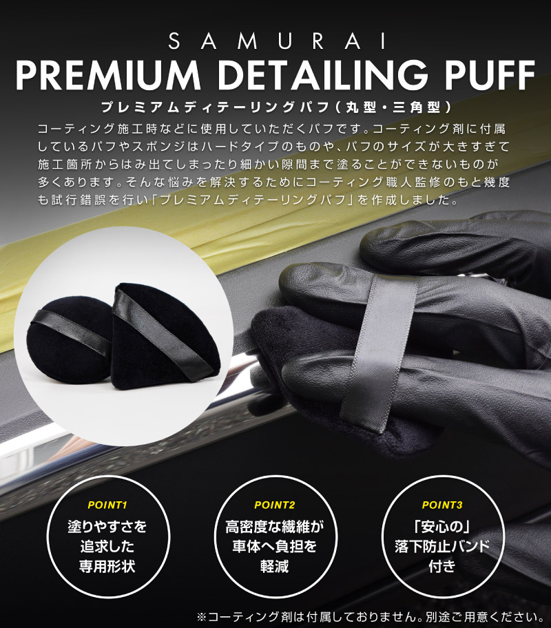 サムライコンプリートクリーナーだけでなく、多くのコーティング剤やワックスの塗り込みにもご使用いただけます。