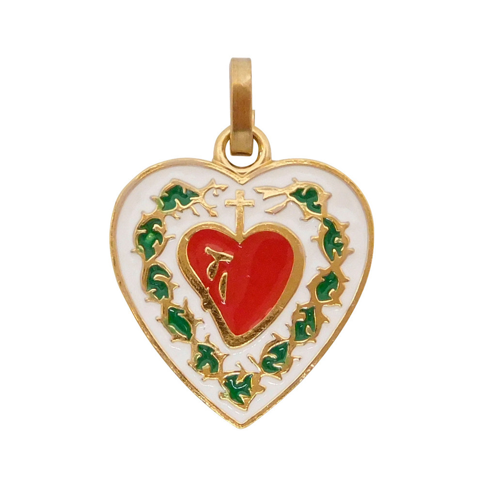 白赤緑のエナメルが可愛らしいハート型のメダイです。