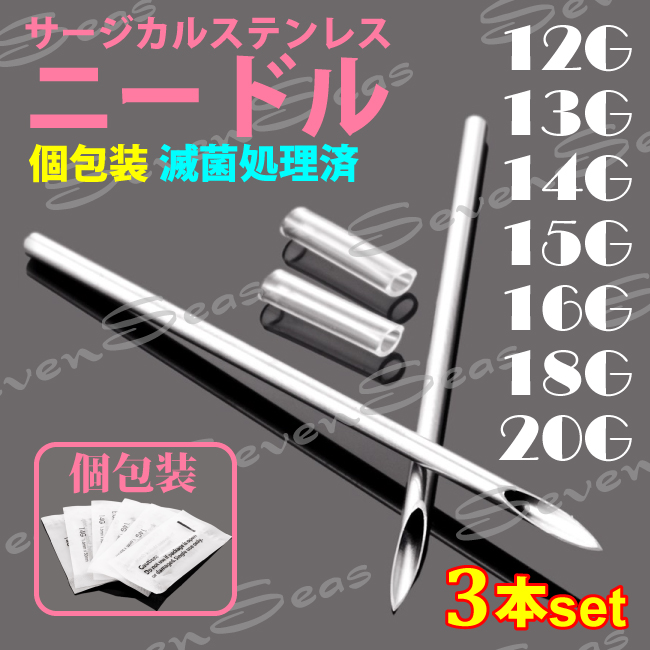 お任せ配送無料で最安 3本セット 高品質ニードル ピアス 練習用 サージカルステンレス アクセサリー製作 先端保護カバー付 追跡有 おまかせ配送料当店負担