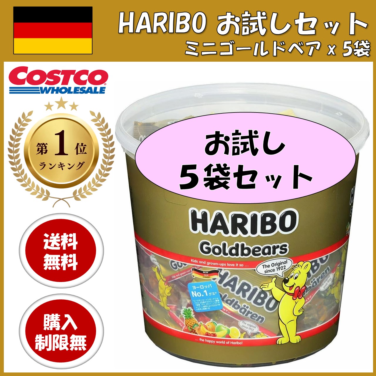 ハリボー ゴールドベア 5袋セット ポイント消化 消費 果汁 グミ お試し 送料無料 家庭用 ギフト クリスマス コストコ