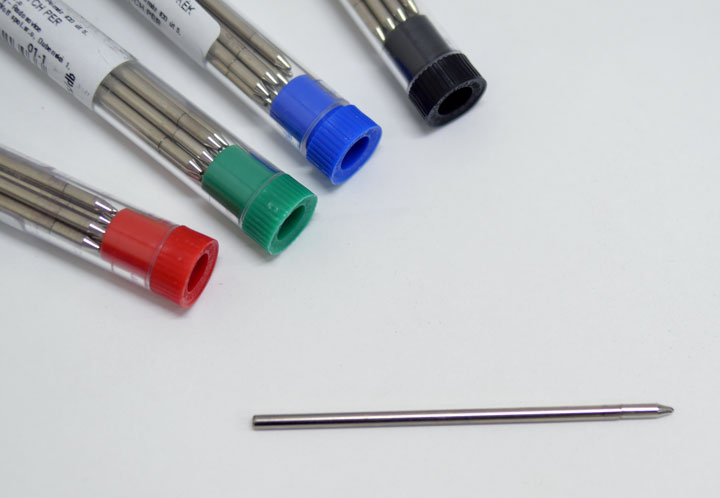 ●ペン先は1mm。インクカラーは4色(ブラック・ブルー・グリーン・レッド)。