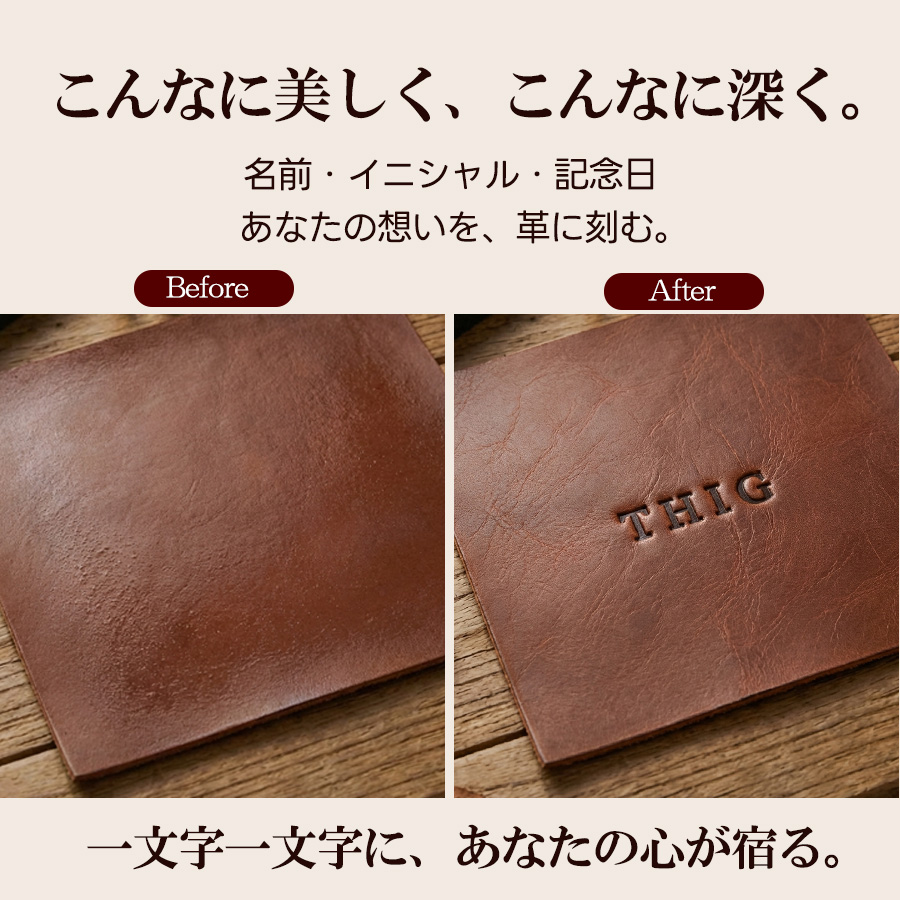 ・適さない革:クロム鞣しや表面加工(顔料塗装など)が施され、水を含ませても柔らかくならない革には綺麗に刻印できません。タンニン鞣しのヌメ革等へのご使用を推奨します。