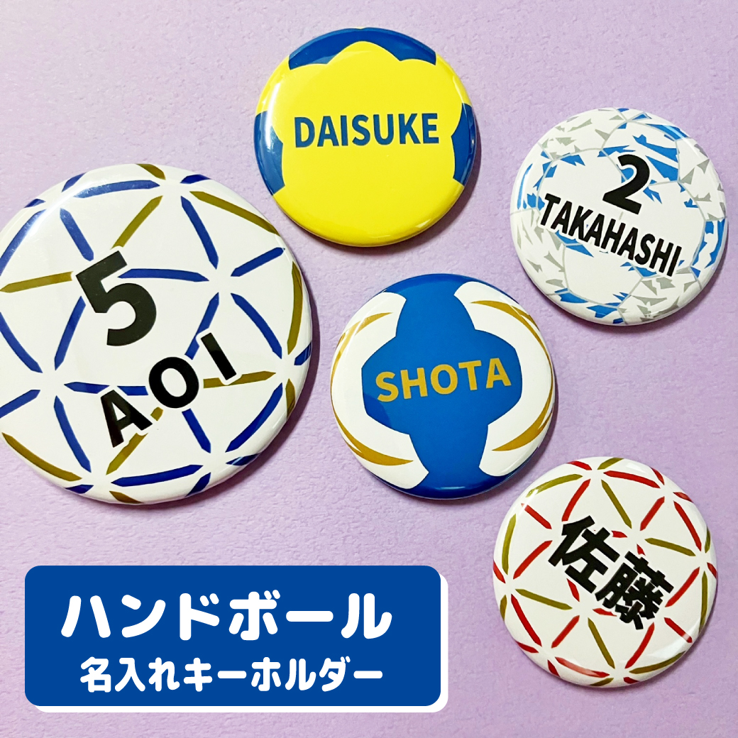 ハンドボール キーホルダー プチギフト 名前入り グッズ 名入れ スポーツ 文字入れ ストラップ 缶バッジ 安全ピン 応援グッズ 卒団記念 大量注文OK