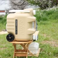 水を入れた状態でも持ち運びやすい、ハンドルとホイール付きです。