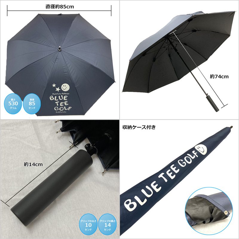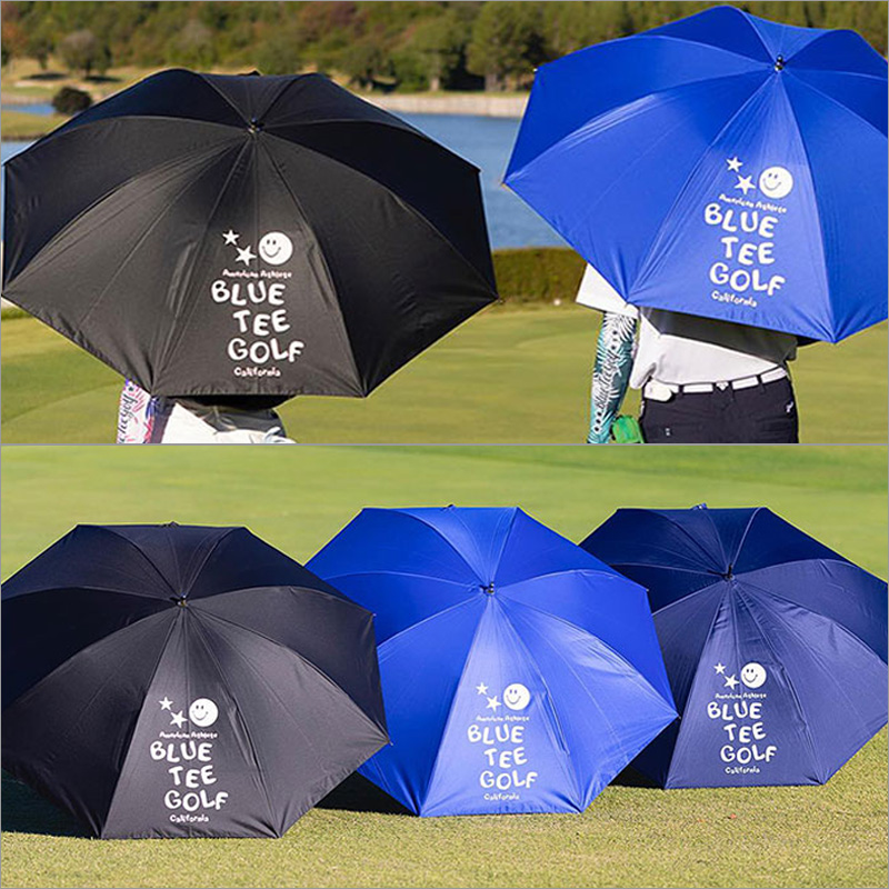 ブルーティーゴルフの可愛いロゴがプリントされた全天候晴雨兼用のUVアンブレラ