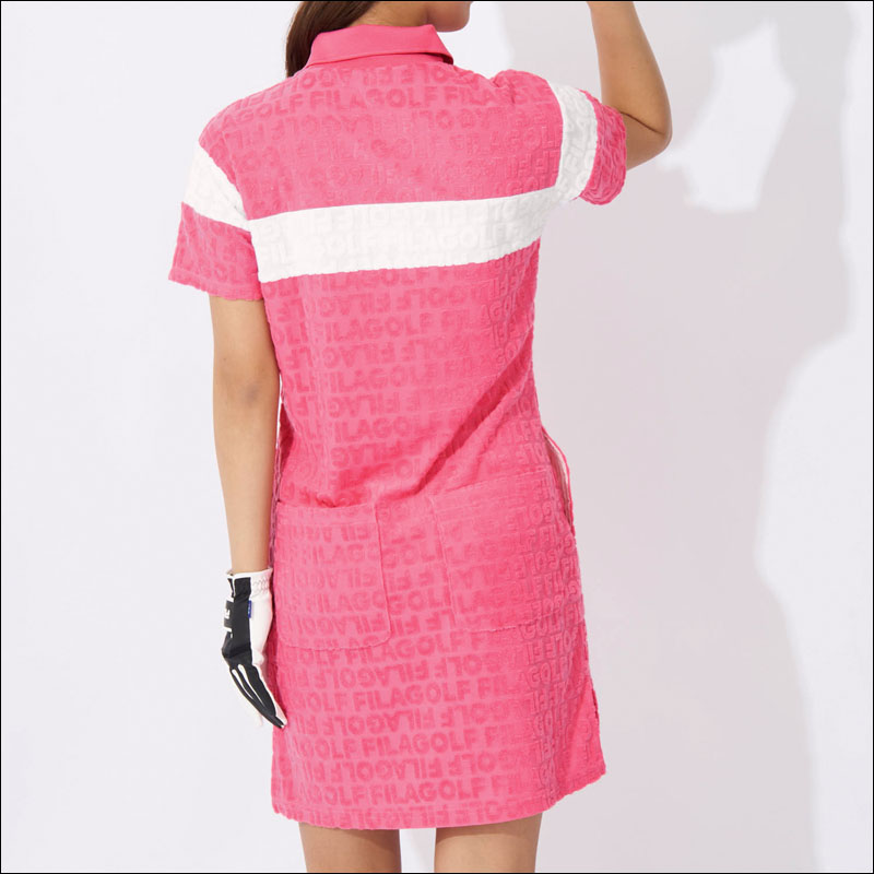 キーワード: ブラック ピンク グリーン グレー ロゴ総柄 刺繍ロゴ LINE ライン タオル地 タオル生地 ジャガード生地 パイル生地 パイルジャガード UV CUT 紫外線カット 伸縮 ポロシャツ 半袖ポロ ゴルフポロ ゴルフワンピ レディースワンピ レディースウェア レディースウエア レディスウェア レディスウエア ゴルフウェア ゴルフウエア レディースシャツ レディスシャツ ゴルフシャツ 半そで 春 夏 秋 女子用 女性用 レディース レディス ウィメンズ