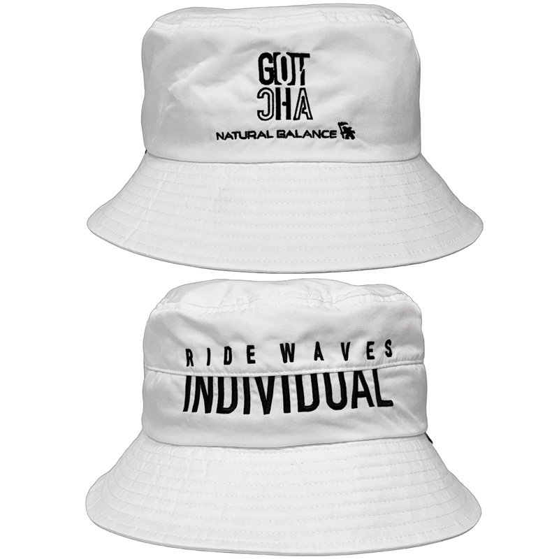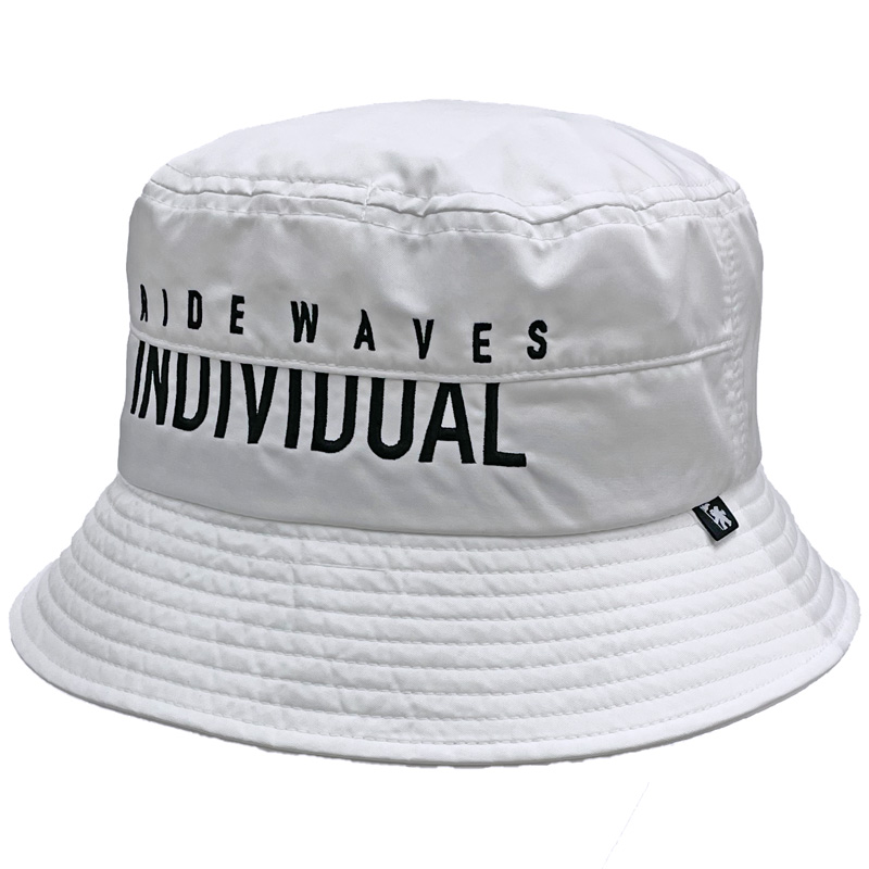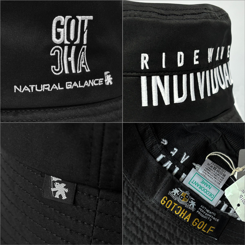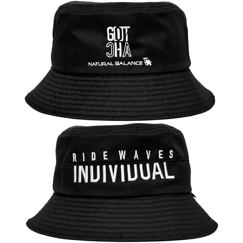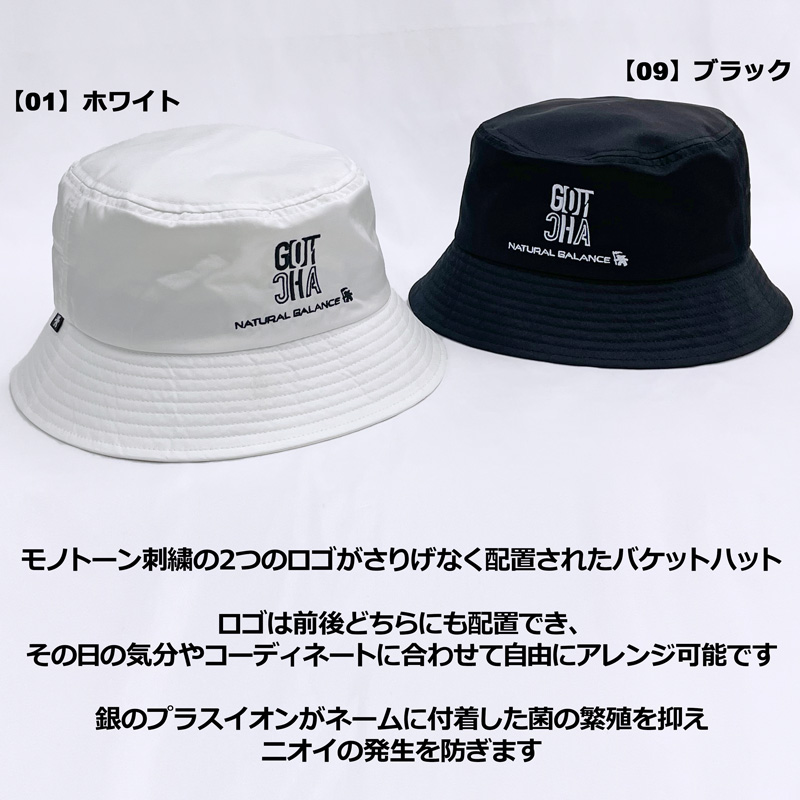モノトーン刺繍の2つのロゴがさりげなく配置されたバケットハット