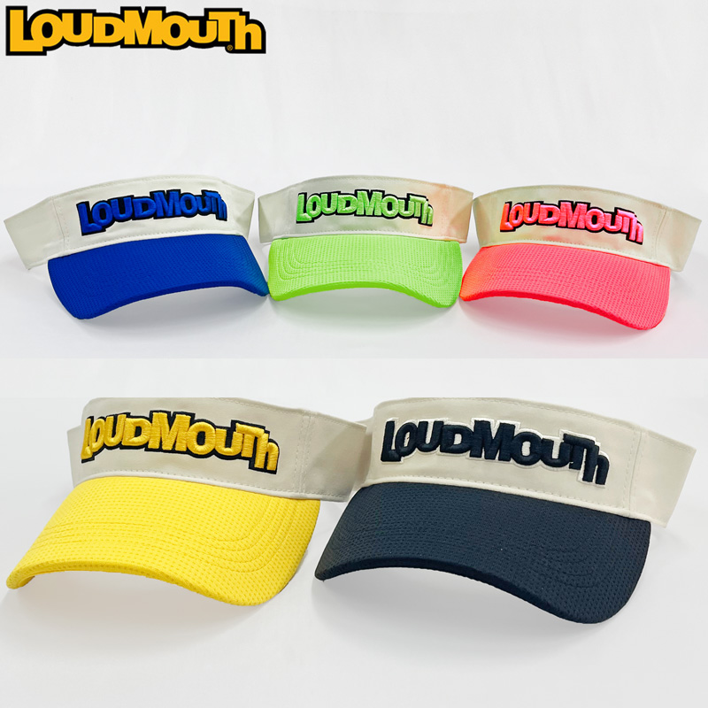 フロントにラウドマウスロゴの立体刺繍が施された軽量サンバイザー