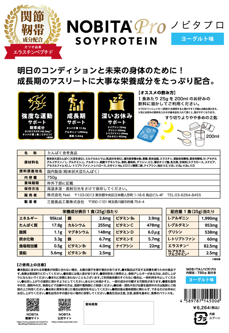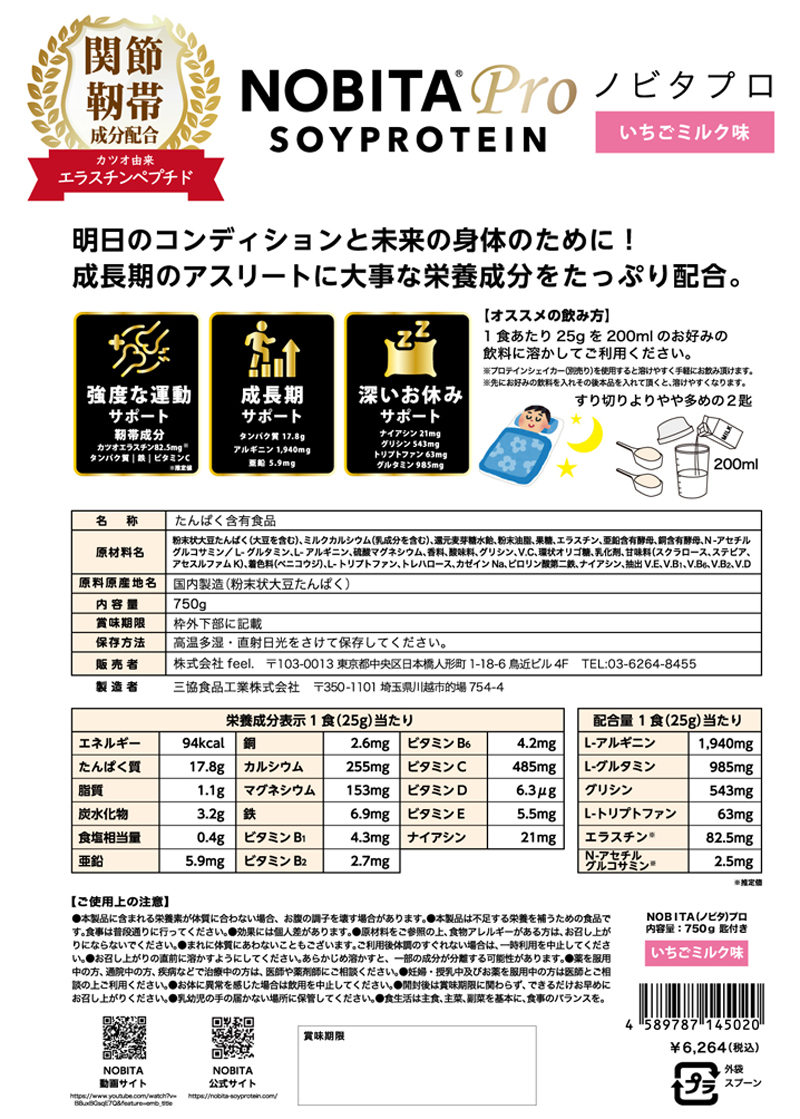 腱および靱帯機能の改善をする特許成分「カツオ由来エラスチン」を配合。頑張るアスリートを強力にサポートします。