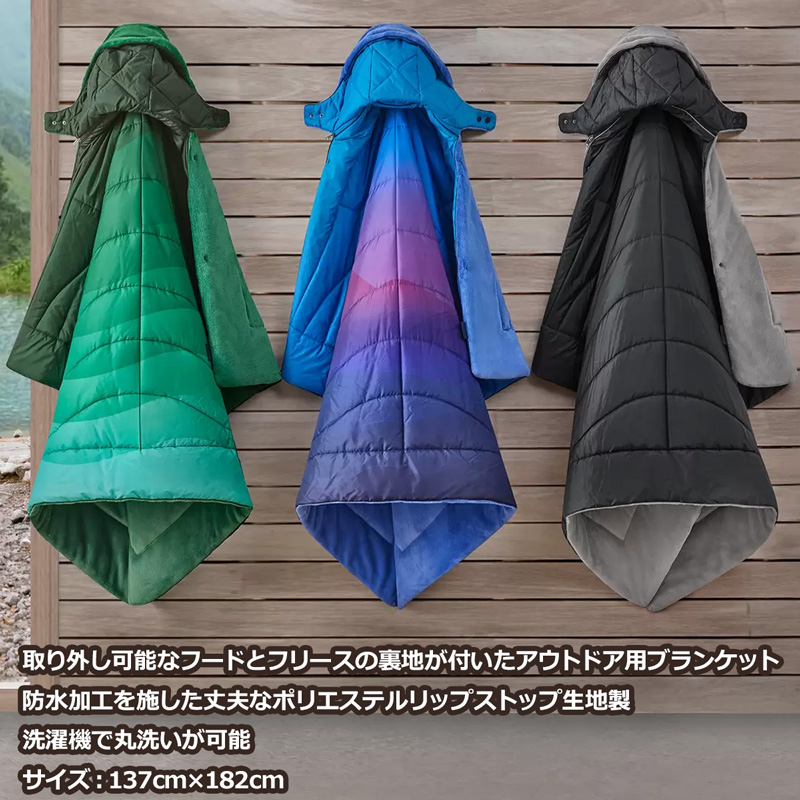 取り外し可能なフードとフリースの裏地が付いたアウトドア用防水ブランケット
