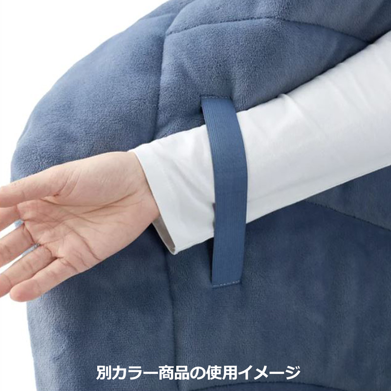 ジッパー付きのフードを取り外し腕を袖に通すだけで簡単に「着る毛布」として使用でき、襟元の2個のボタンでフロントをしっかりと留めることができます