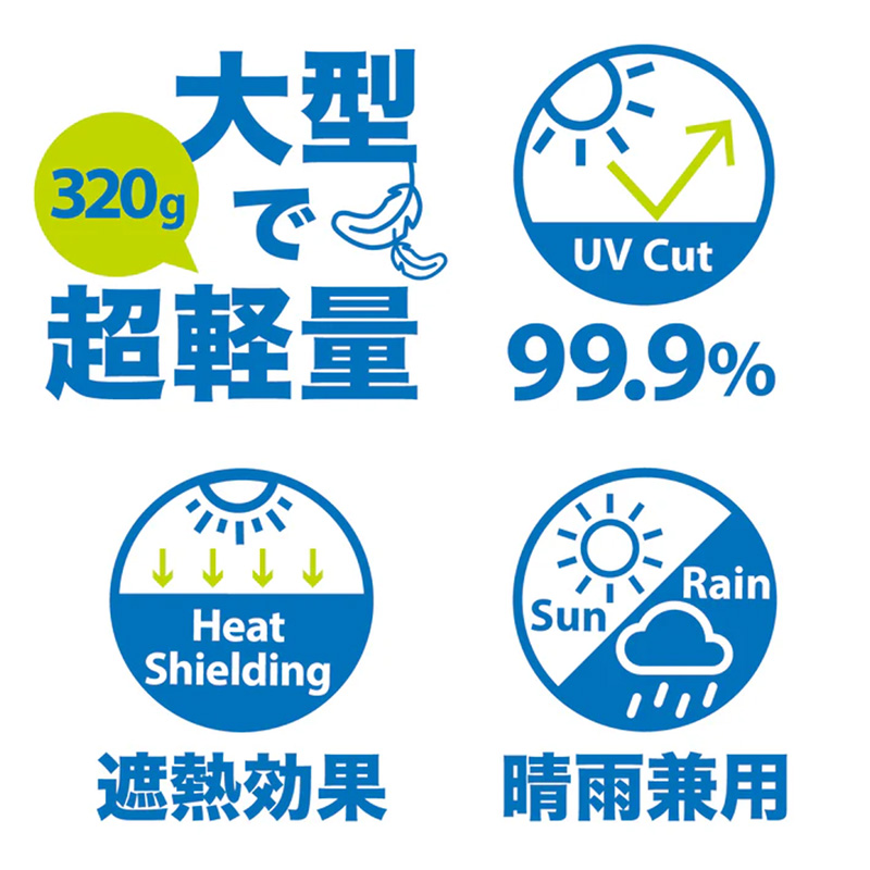 骨部分にカーボンを使用することで、超軽量320gを実現した晴雨兼用アンブレラ