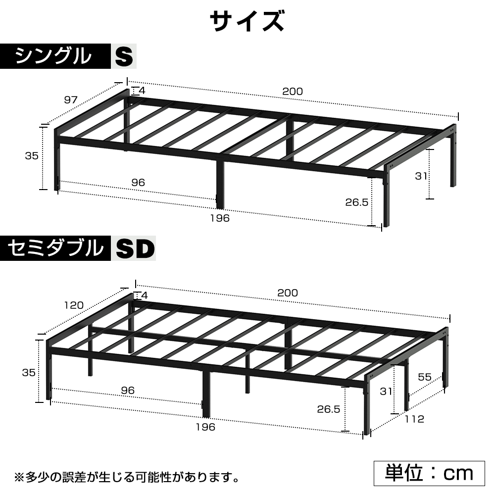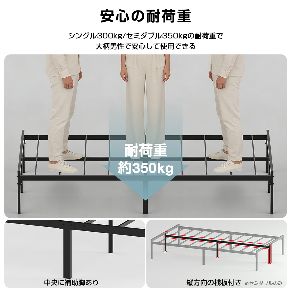 ベッドフレーム パイプベッド シングル セミダブル スチールベット スチールパイプ ベッド 耐荷重350kg すのこベッド 組立簡単 耐久性 頑丈 軽量 S SD おしゃれ