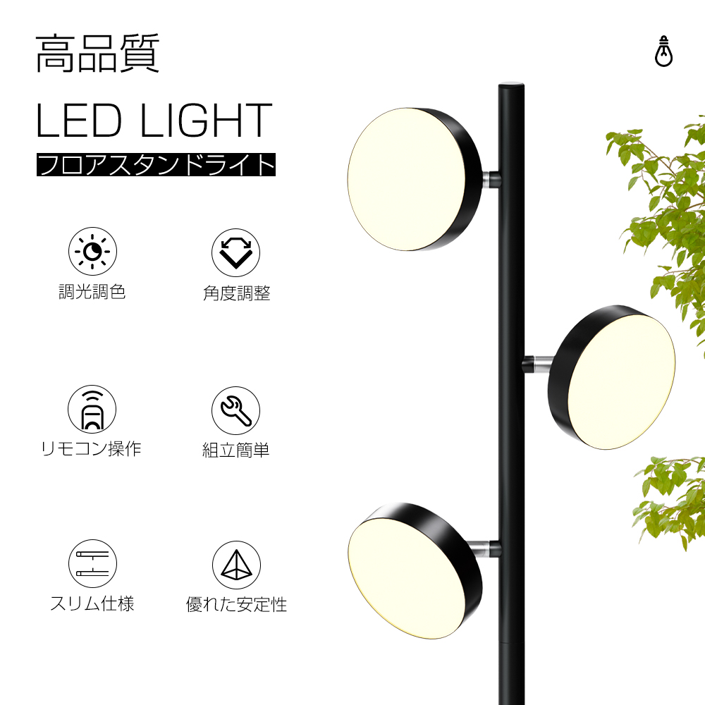 フロアライト 間接照明 リモコン付き 3灯 無段階調光調色 LED電球 3色 照明 スタンドライト フロアスタンド 北欧 インテリア 照明スタンド 1年保証 おしゃれ