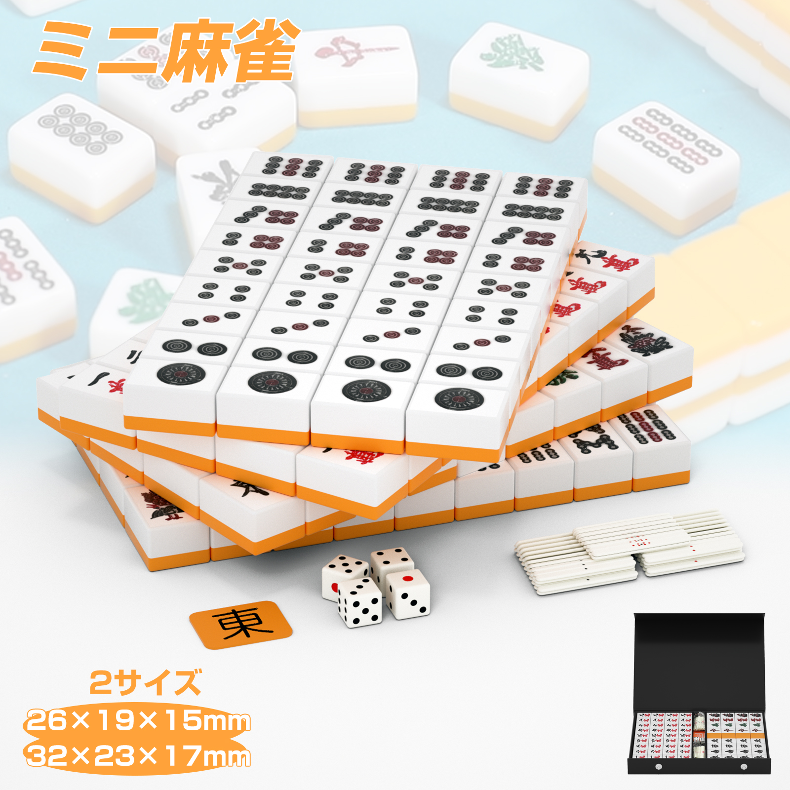 送料無料 麻雀牌 収納ケース付 持ちやすい 麻雀牌 麻雀 花牌 点棒セット 起家 マークサイコロ 娯楽 趣味 ゲーム パーティ白牌 白+オレンジ サイズ26/32cm