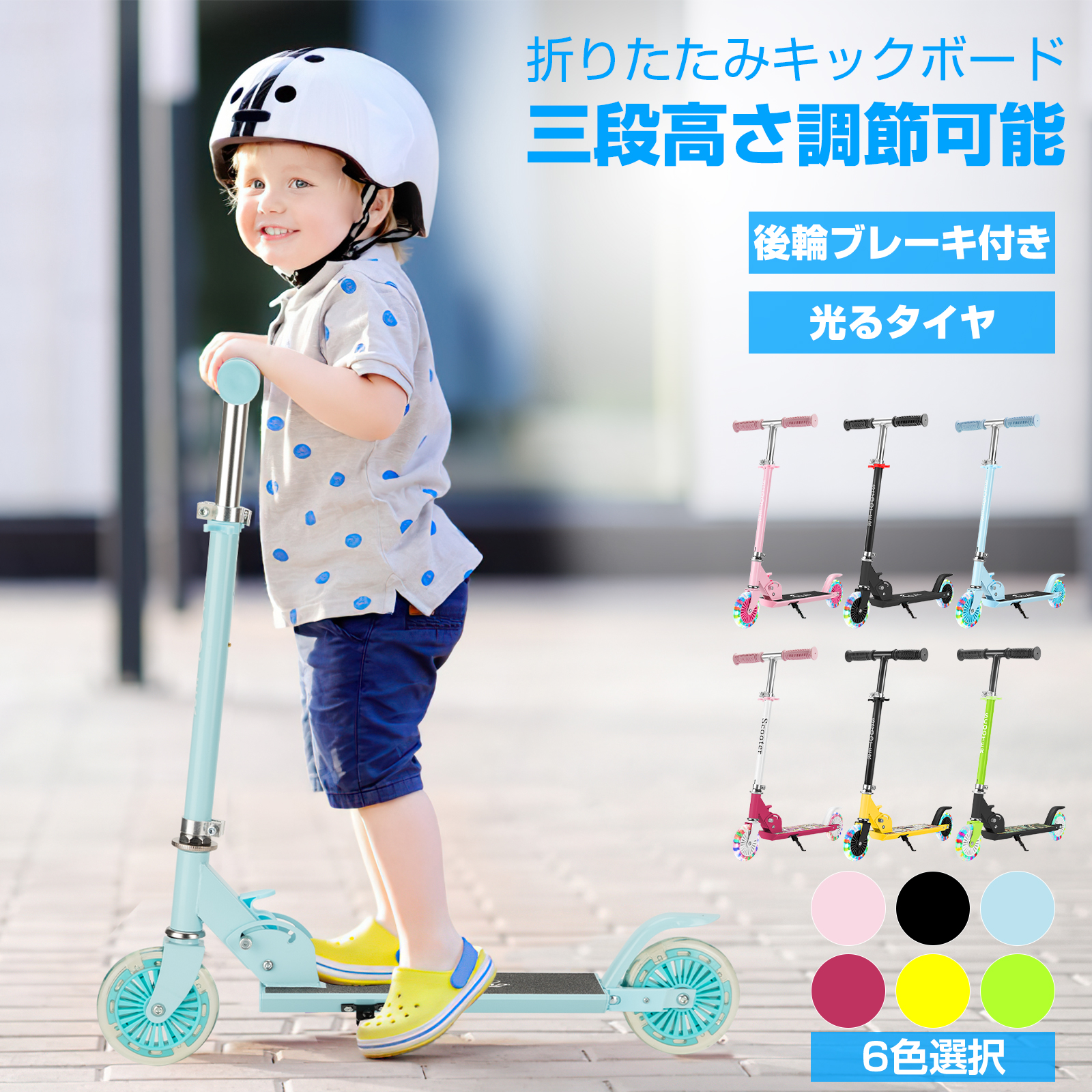 キックスクーター 子供用 キックボード LED 光るホイール 高さ3段調節可能 ブレーキ付き 3歳から おもちゃ プレゼントに再適!