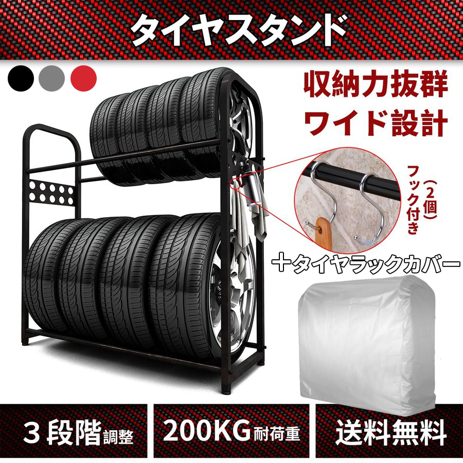 タイヤラック タイヤラックカバー セット タイヤスタンド 二段式タイヤスタンド 縦置き 車用タイヤラック タイヤ交換 8本 タイヤ収納 劣化防止 耐荷重200kg