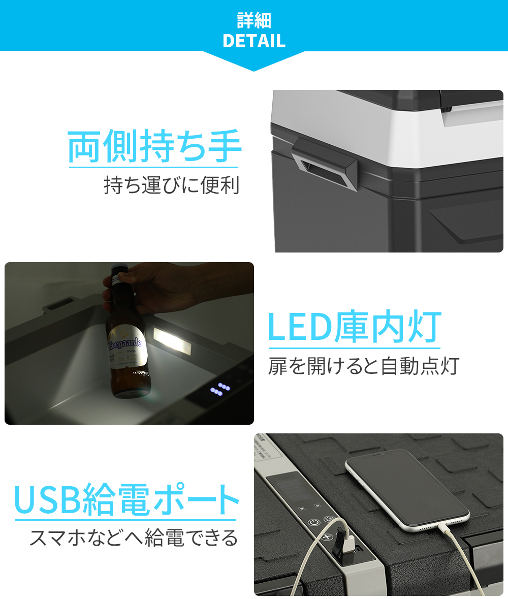 ・低電圧保護機能搭載、3段階調節でき、車バッテリーの電圧が下がると、自動的に電源を切ります。バッテリー上がりの心配がないので安心に使用できます。