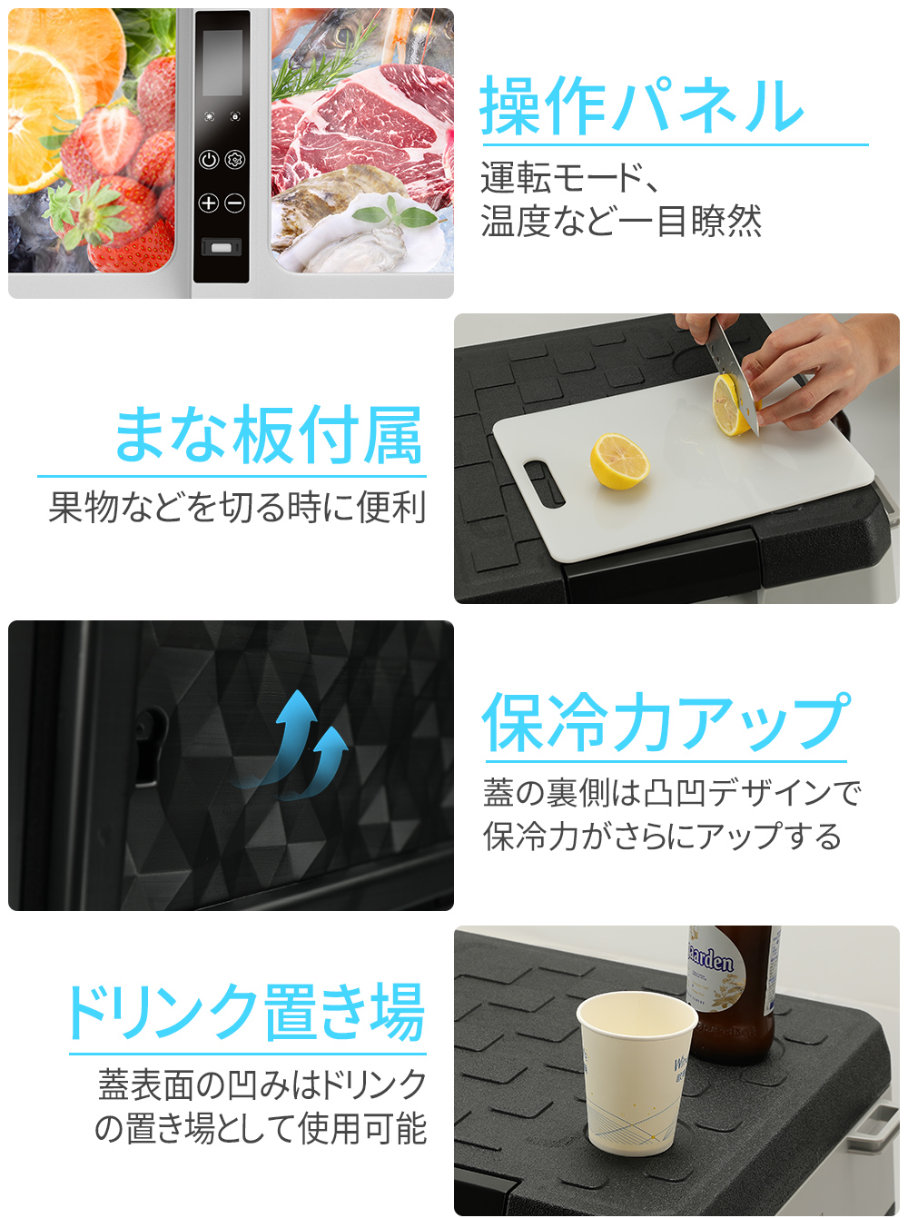 ・高密度ウレタン保温材採用し(断熱性/省エネ3倍)、外部からの温度による影響を最小限に抑え、庫内の温度を保ちます。電源が切られた状態で、外部の温度は20℃〜25℃の場合、24時間以上も保冷し続けます。